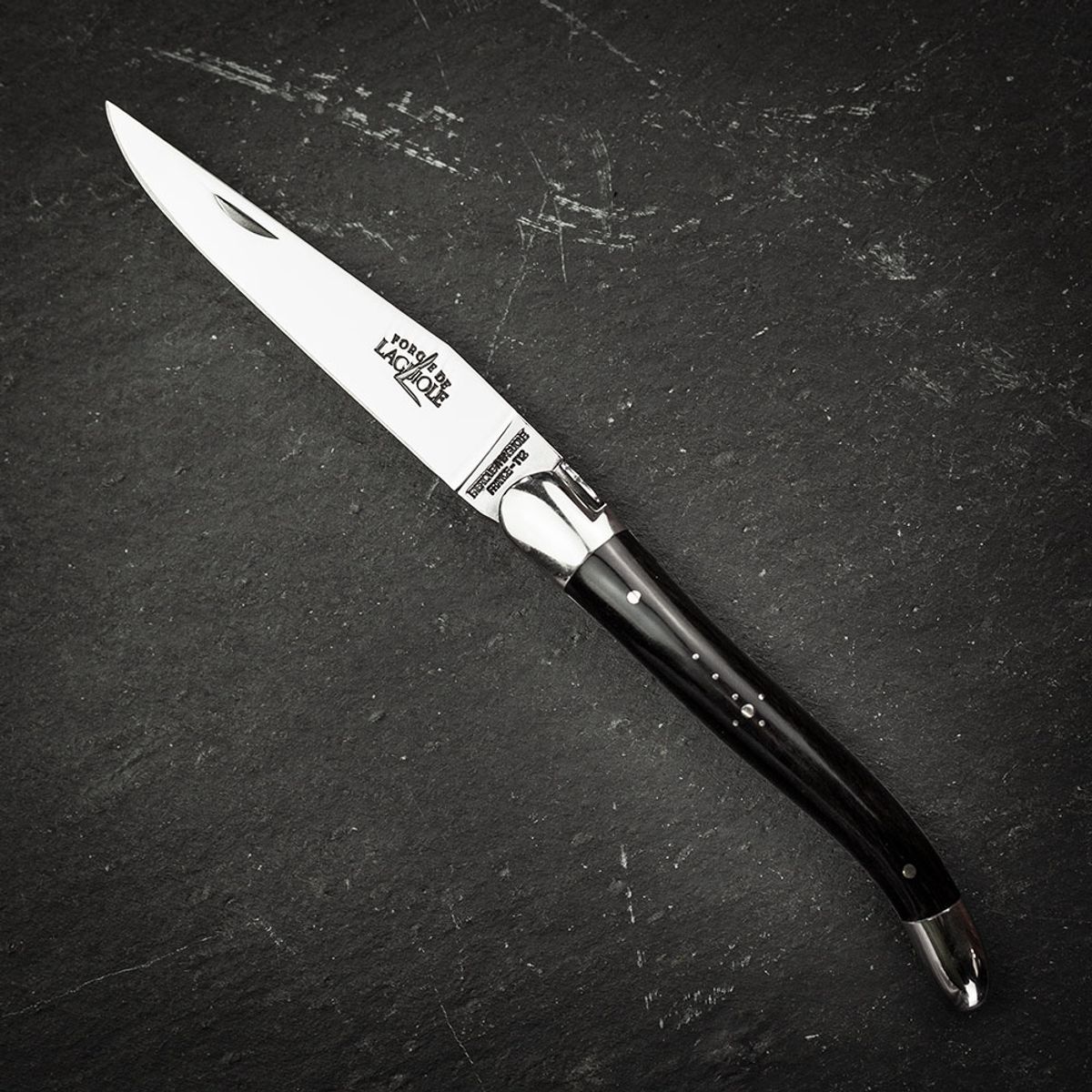Forge de Laguiole Folding Knife High Polish Blade with Dark Horn Handle - 11cm